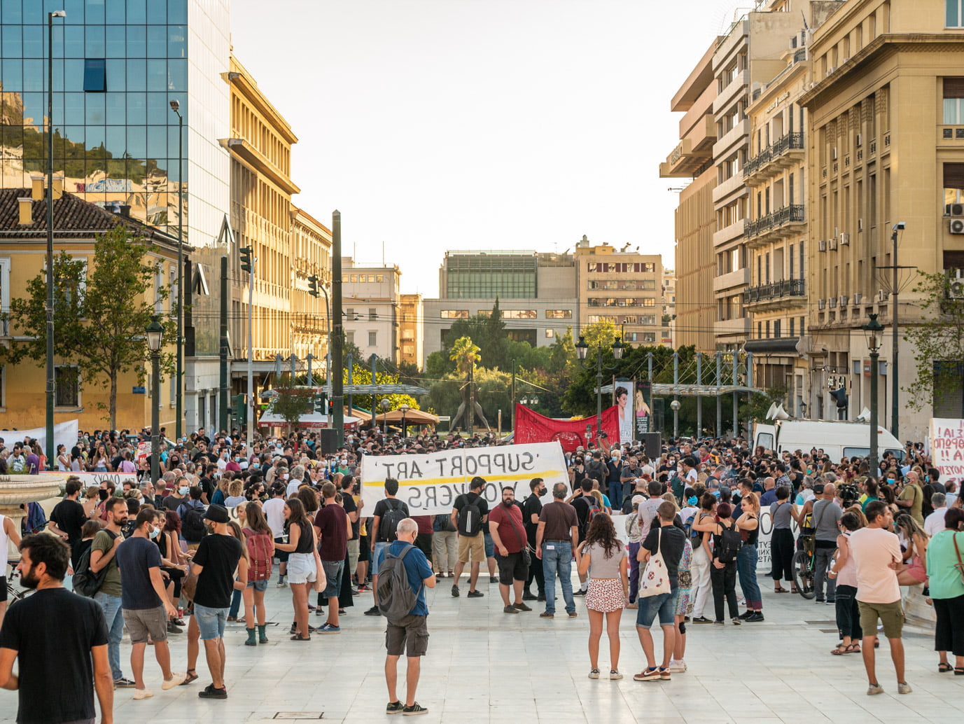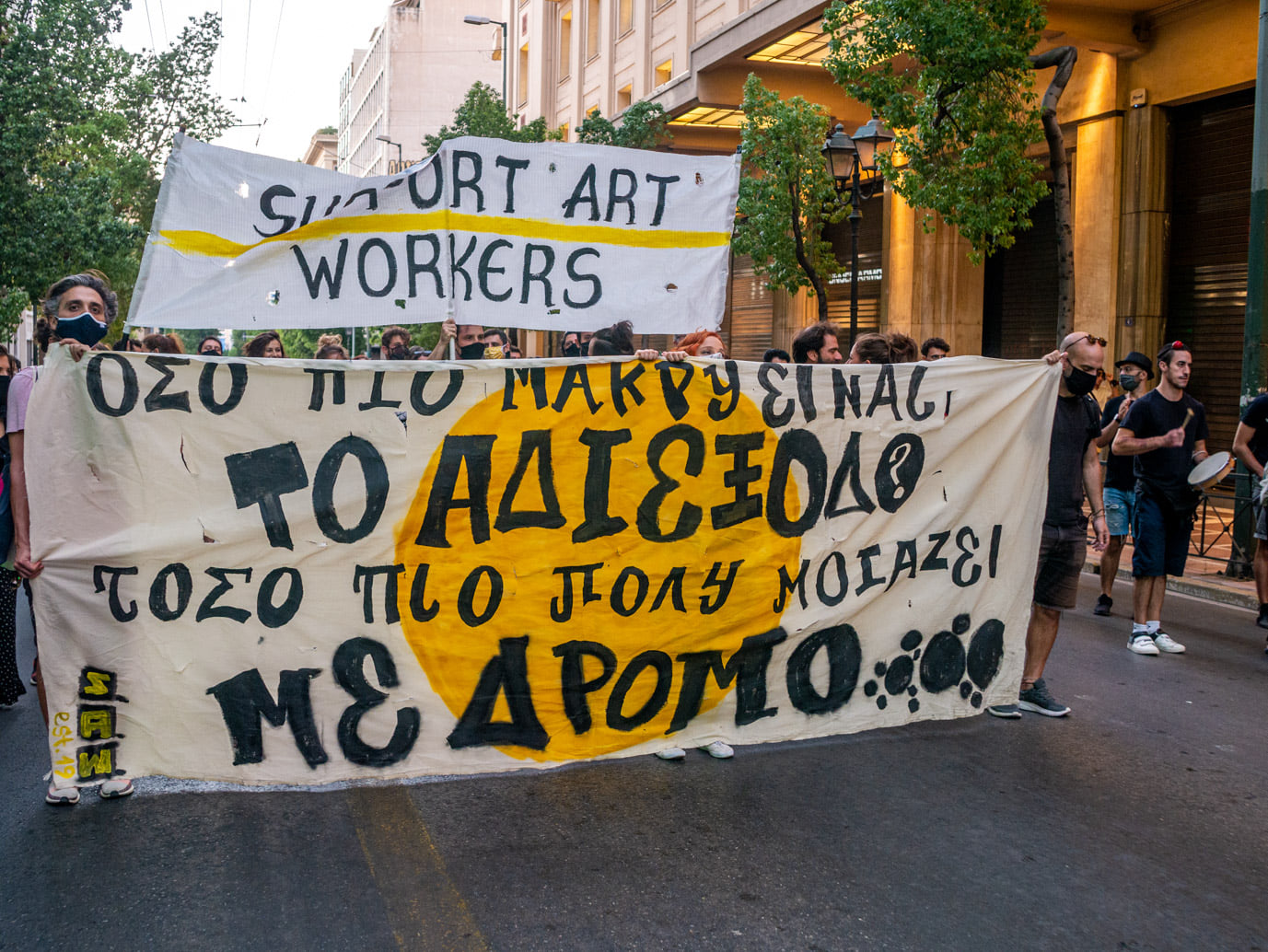 διοργάνωση της διαμαρτυρίας, της πρώτης για τη νέα καλλιτεχνική περίοδο,